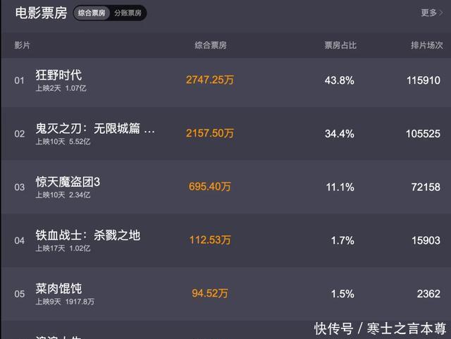 截止到了今天下午两点,票房已经突破了6523万,可见,有几部热门级电影上映,对于市场是有一定的提振作用的。 《狂野时代》是必须要提的一部电影了,“顶流+影后”的配置,在上映之前就拿下了1亿的预售票房。 但粉丝类的电影一向是“预售猛,但后劲乏力”,电影的总预测成绩只有2.28亿,美 其名曰“艺术电影”,其实就是故弄玄虚,云里雾里,因此,很难撑得起电影市场。