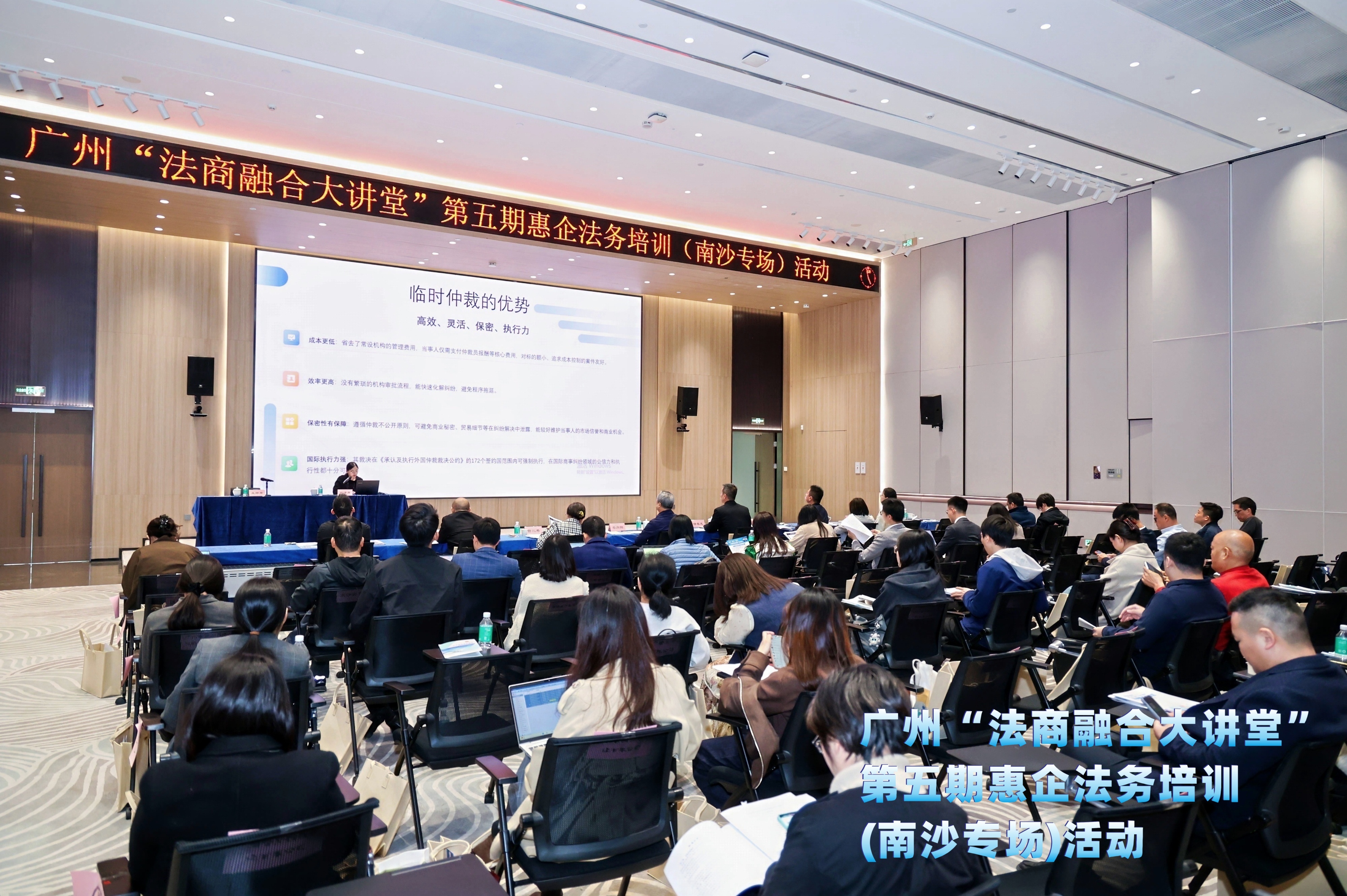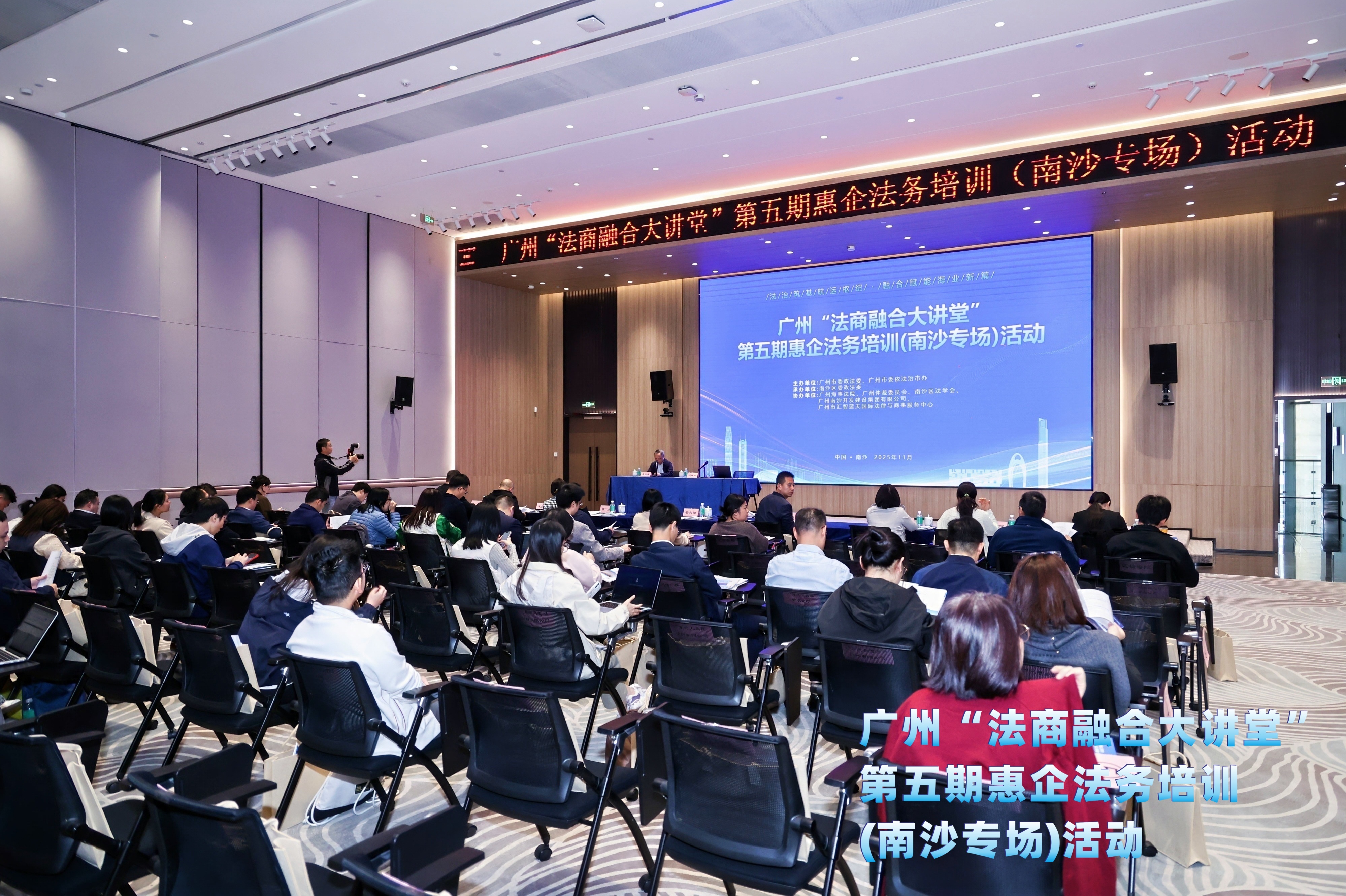 11月28日,由广州市委政法委、市委依法治市办主办,南沙区委政法委承办的“法商融合大讲堂”第五期惠企法务培训活动在南沙举办。广州市、区相关单位负责人以及企业代表约90人参加。