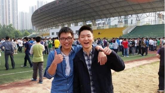 在合肥一中时的张恩阳(左)