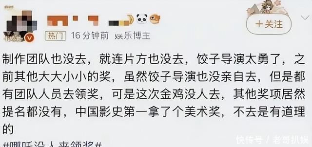 而在当晚的颁奖典礼,当颁奖嘉宾念到《哪吒2》的时候,却没有一个人上台领奖,不仅导演饺子没来,就连整个剧组一个人都没来。 他们似乎在用这样的方式,表达着自己内心的不满,也给一部分人留下饺子心胸狭窄的印象,但事实真的如此吗?