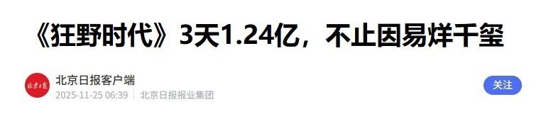 北京日报客户端 2025-11-25《狂野时代》3天1.24亿,不止因易烊千玺