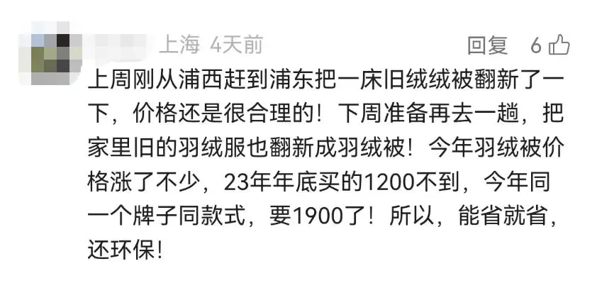 羽绒原材料的涨价也催生了一门生意的红火“羽绒服爆改羽绒被”!