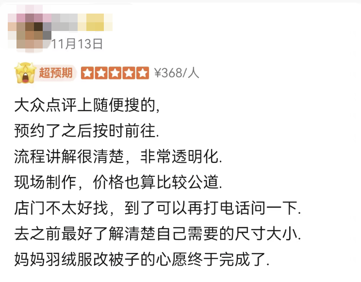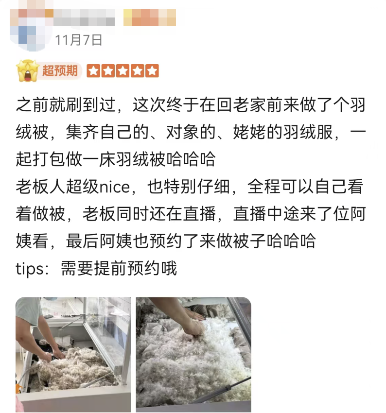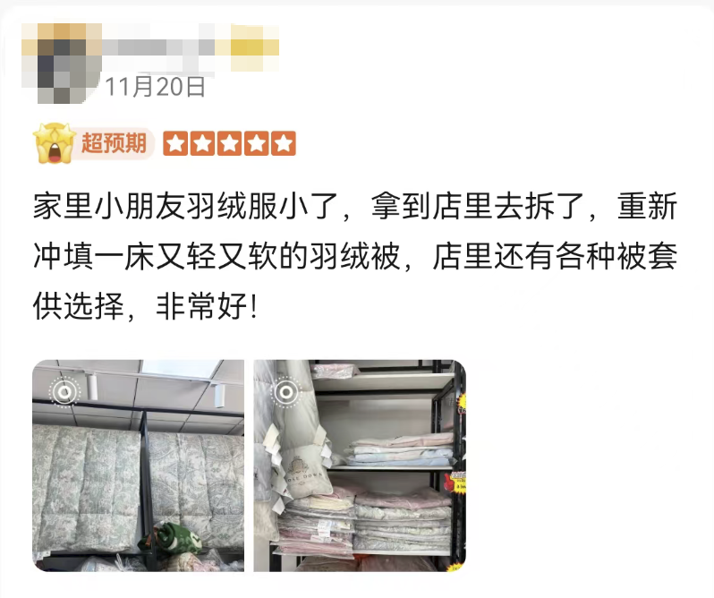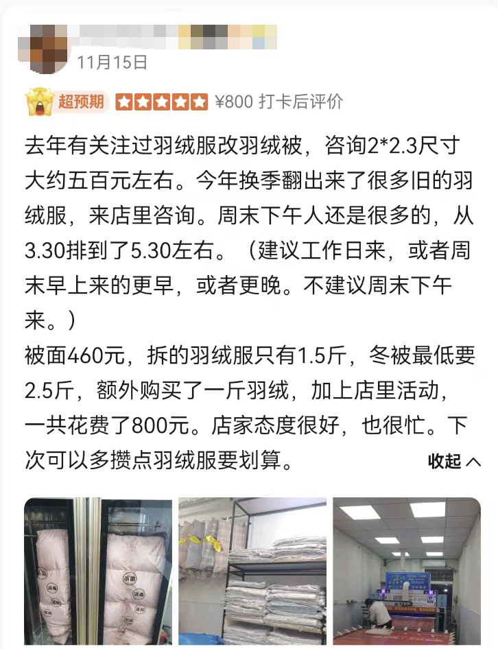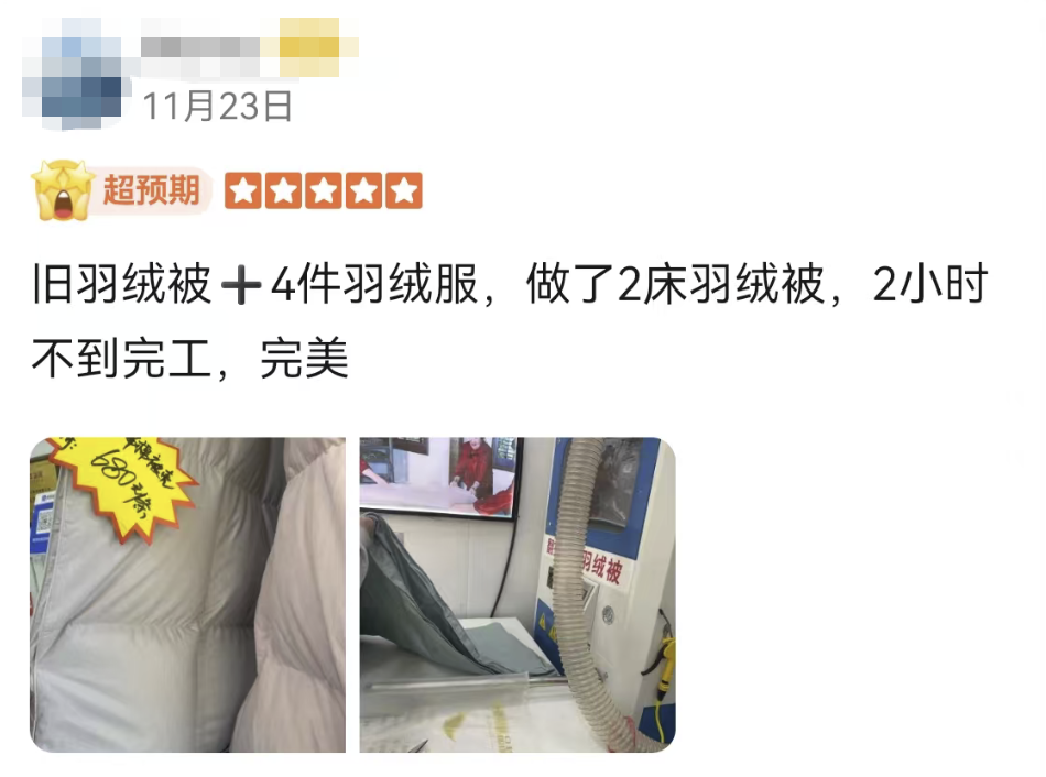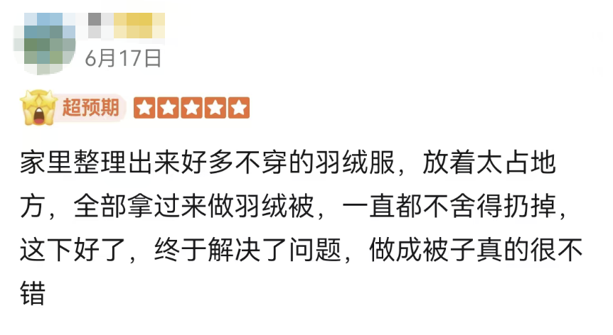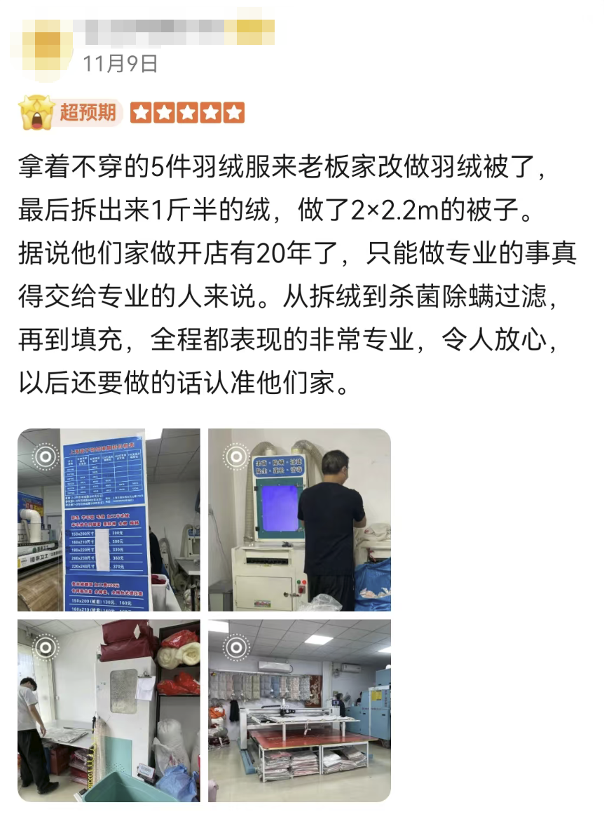 甚至还有客人收集了全家人的旧羽绒服一起拿过来改被子!也太机智了吧!思路又打开了!