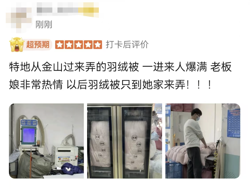 店里还有专业的机器设备做好的新被子送进去烘干蓬松、杀菌消毒还真不错呀
