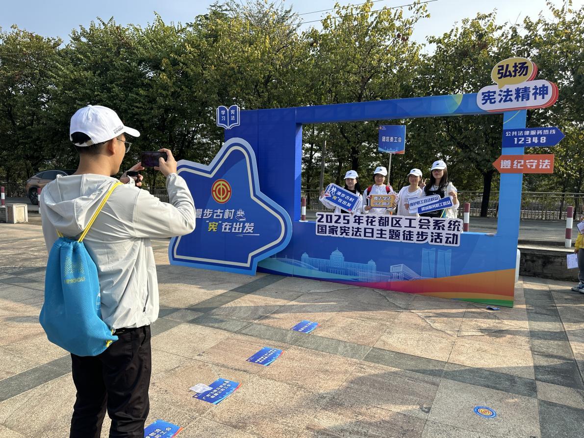 徒步途中的“宪法能量站”同样人气十足,不仅提供饮用水、水果等补给,更摆放着图文并茂的宪法法律知识小册子,法律服务志愿者现场为职工解答劳动合同、权益保障等疑问,将法治补给与能量补给同步送达。“原来宪法离我们这么近,不管是工作中的劳动保障,还是生活中的权益维护,都有法律撑腰。”一名职工在翻阅宣传册后深有感触。